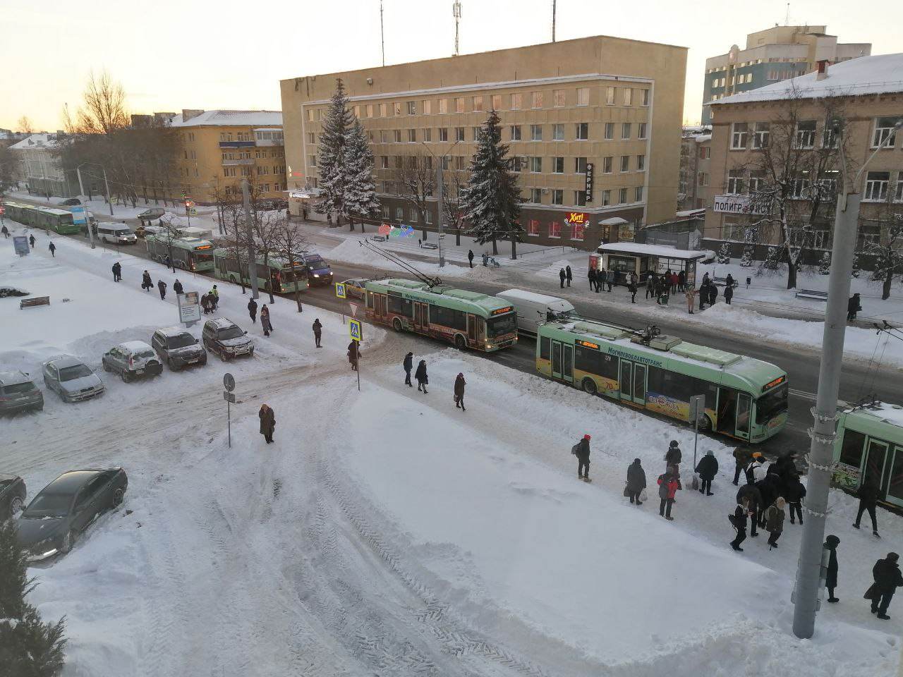 Сообщается, что из-за пробки автомобили стоят от Минского рынка до Политеха.