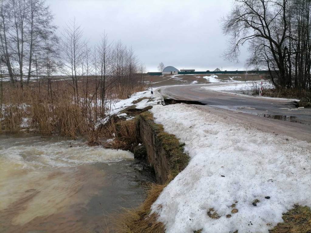 Из-за аномального для начала января тепла начал активно таять снег, что привело к подтоплениям. Как сообщает МЧС, в частности, пострадала дорога в Круглянском районе. Утром 2 января в службу спасения поступило сообщение о повреждении участка дороги между деревнями Грибино и Александрово.