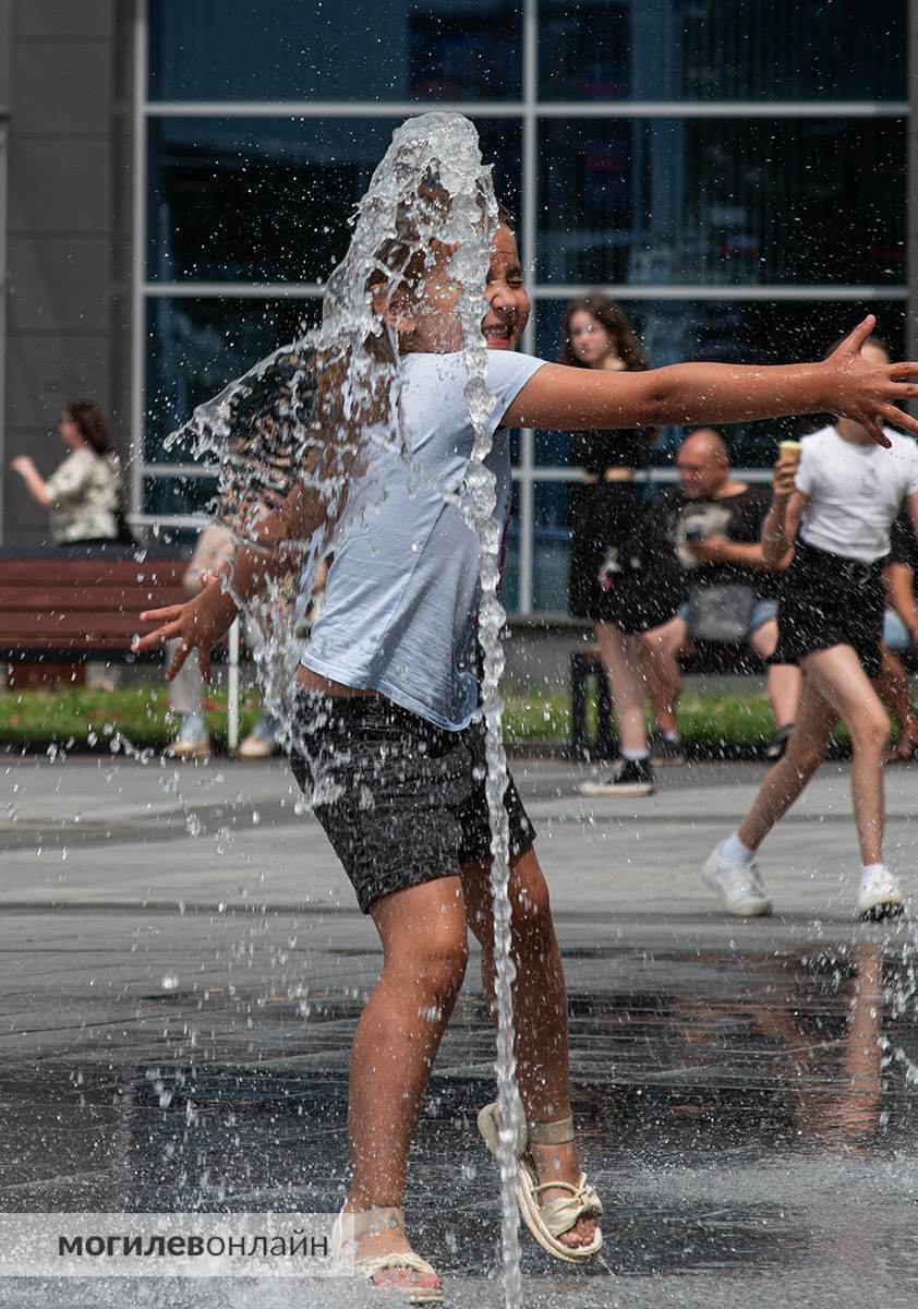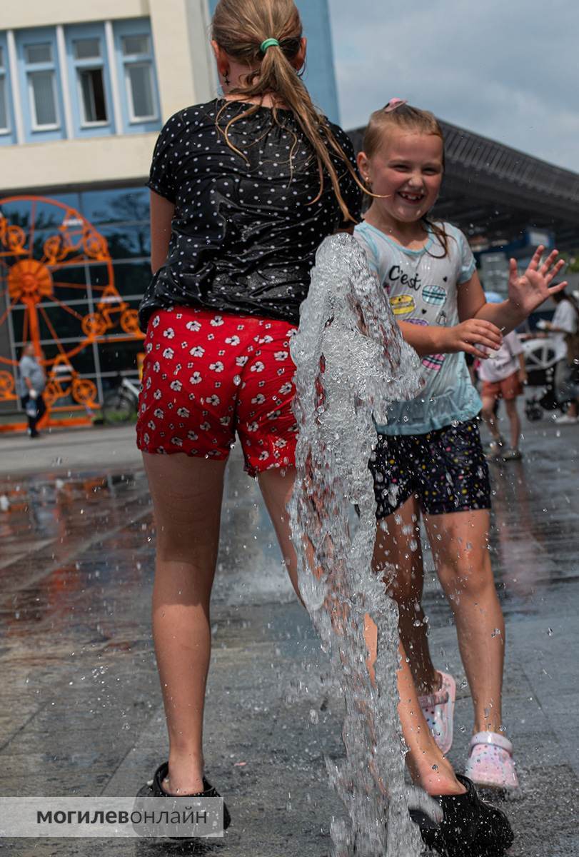 Пасмурное утро четверга сменилось теплым и даже солнечным днем. Особенно весело проводили время дети на площади Единства — плескались в наземных фонтанчиках, промокли до нитки, но были счастливы. Радостно, что родители дают ребятне порезвиться и не пристают с гиперопекой.