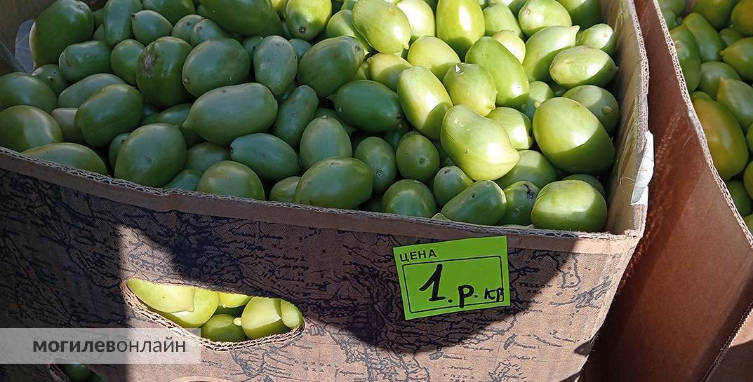 Огромный выбор помидоров всех оттенков и размеров: от алых и желтых до бурых, от крупных, идеальных для салата, до мелких, прямиком для маринования. Цены от 3 руб./кг. Есть даже зеленые томаты по 1 руб./кг.