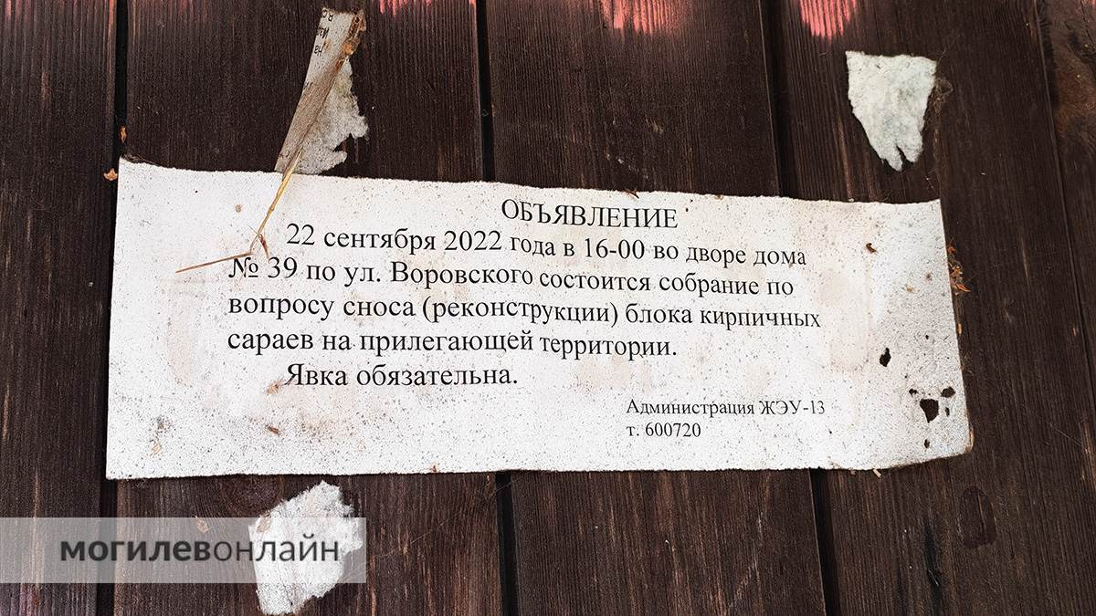 Вопрос сноса хозпостройки поднимается с 2022 года. До сих пор на двери одной из кладовок висит объявление: ЖЭУ-13 собирает жильцов дома для обсуждения изменений на дворовой территории. Правда, тогда было непонятно, снесут кирпичный сарай или реконструируют.